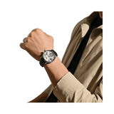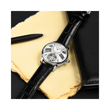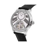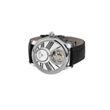 A stunning men's watch that blends classic elegance with superb craftsmanship is the Britime Motion 323-L10306. Roman numerals are tastefully set into its clean white dial, giving it a timeless and sophisticated appearance. The multipurpose display is both useful and fashionable, with sub-dials for monitoring the time, date, and day. The precise operation of the automatic movement is shown by the open-heart design at six o'clock, highlighting the watch's precision and attention to detail.