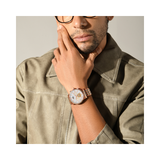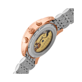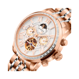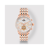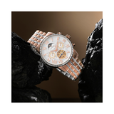 The Britime Orbit is an automatic watch that blends fine engineering with classic style. The watch's silver dial with Roman numeral markings has multi-purpose subdials that show the day, date, and 24-hour time. The complicated automatic movement is revealed by the open-heart design at 6 o'clock, while the moon phase complication at 12 o'clock gives a touch of heavenly grace. With its elegant linked bracelet and polished stainless steel construction, the Orbit is a sophisticated option that works well for both formal and informal settings.
