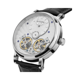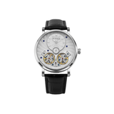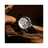 The Lunaris Spiral is the epitome of both mechanical accuracy and celestial splendor. With a dial that mimics lunar hues, this watch, which was inspired by the moon's peaceful power, depicts the enigma of the night sky. The leather strap and stainless steel case are the ideal combination of robustness and style. The Lunaris Spiral is more than simply a watch; it is a representation of orbital elegance, based on performance and designed for people who value classic style and sophisticated functionality.