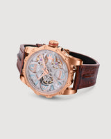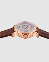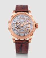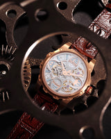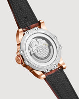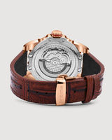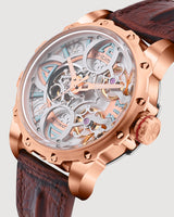 The Britime Era is a remarkable automatic watch that skillfully blends modern technology with classic style. With its eye-catching skeleton dial, it provides a glimpse inside the complex internal mechanisms of the watch, enabling fans to appreciate the fine craftsmanship that went into its construction. It is made into a true statement item by the bold, sturdy case and textured strap, which accentuate its unique appearance.