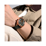 Britime London's Jupiter combines accuracy and beauty. It displays superb craftsmanship with an exposed skeleton mechanism at six o'clock and a dual-tone dial with a celestial-inspired day-night sub-dial. This automatic watch, which is made of stainless steel and has a black leather band, is a classic accessory for any setting. Make a statement with the ideal blend of sophistication and elegance.