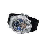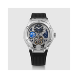 The Britime Asteroid is an audacious and cutting-edge automatic watch that embodies the spirit of space exploration. The watch has an amazing depiction of the Earth, moon, and stars on a distinctive open dial that displays complex mechanisms. Its open-heart shape and 24-hour time display offer both practicality and aesthetic appeal. The Asteroid is the ideal statement piece for anyone who are interested in the wonders of space and contemporary engineering because of the sturdy strap that goes well with the eye-catching case.