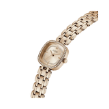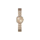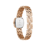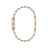 The Hazel watch reimagines a traditional square form with a brilliant, modern flair, making it effortlessly bright and modern. Every component of this watch, which was designed for women who inspire, lead, and shine, exudes confidence and style. The teal sunray dial is highlighted by glittering crystals around the sides of the 25 mm square case, which has an eye-catching two-tone finish. A sophisticated, brilliant impression is produced by additional crystal accents in the middle, which offer depth and subtle brilliance. The case is complemented with a polished two-tone link bracelet with self-adjustable G-links for a comfortable, fitted fit and crystal accents. Hazel is a statement-making accessory that blends structure, sparkle, and contemporary sophistication. It is little in size yet bold in presence.