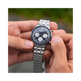 This Seiko SPORT quartz watch, made for people who value both style and usefulness, offers accuracy and longevity. Three chronograph subdials on the deep blue, rich dial make it ideal for precisely recording every moment. This watch, which is encircled by a tachymeter bezel, blends functional performance with athletic design. With its sturdy Hardlex crystal, screw-in case back, and 100-meter water resistance, this all-stainless steel watch is ready for any adventure, from daily use to your most strenuous activities.