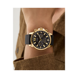 Guess Chronograph Gold Case With Black Dial Silicone Mens Watch GW0913G2