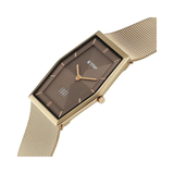 Titan Edge Whimsey Brown Dial Golden Stainless Steel Strap Watch Quartz Analog For Men 10056QM01