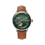 Orbital Open Heart Automatic Analog with Green Dial Brown Leather Strap Watch | Men | 90226SL01