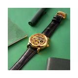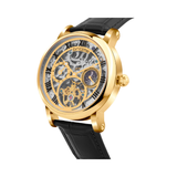 Britime Stellor Golden Case and Black Leather Strap Roman Figure Sapphire Glass Automatic Mens Watch 786-L20406